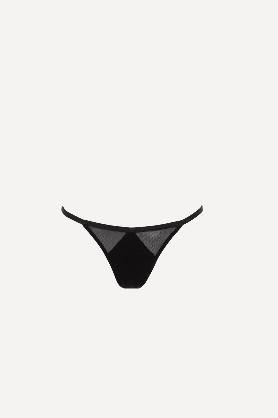 Panty tanga sin encaje, hecho en nylon lycra, tul y algodón en la parte intima, y elásticos suaves en el costado con tensores para graduar según tu gusto.